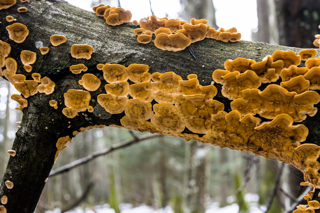 - Festiwal barw na pniach: Niezwykłe grzyby nadrzewne, takie jak wzorzysty wroślak różnobarwny oraz subtelny skórnik szorstki, które choć pospolite dodają kolorytu szarościom przedwiośnia.