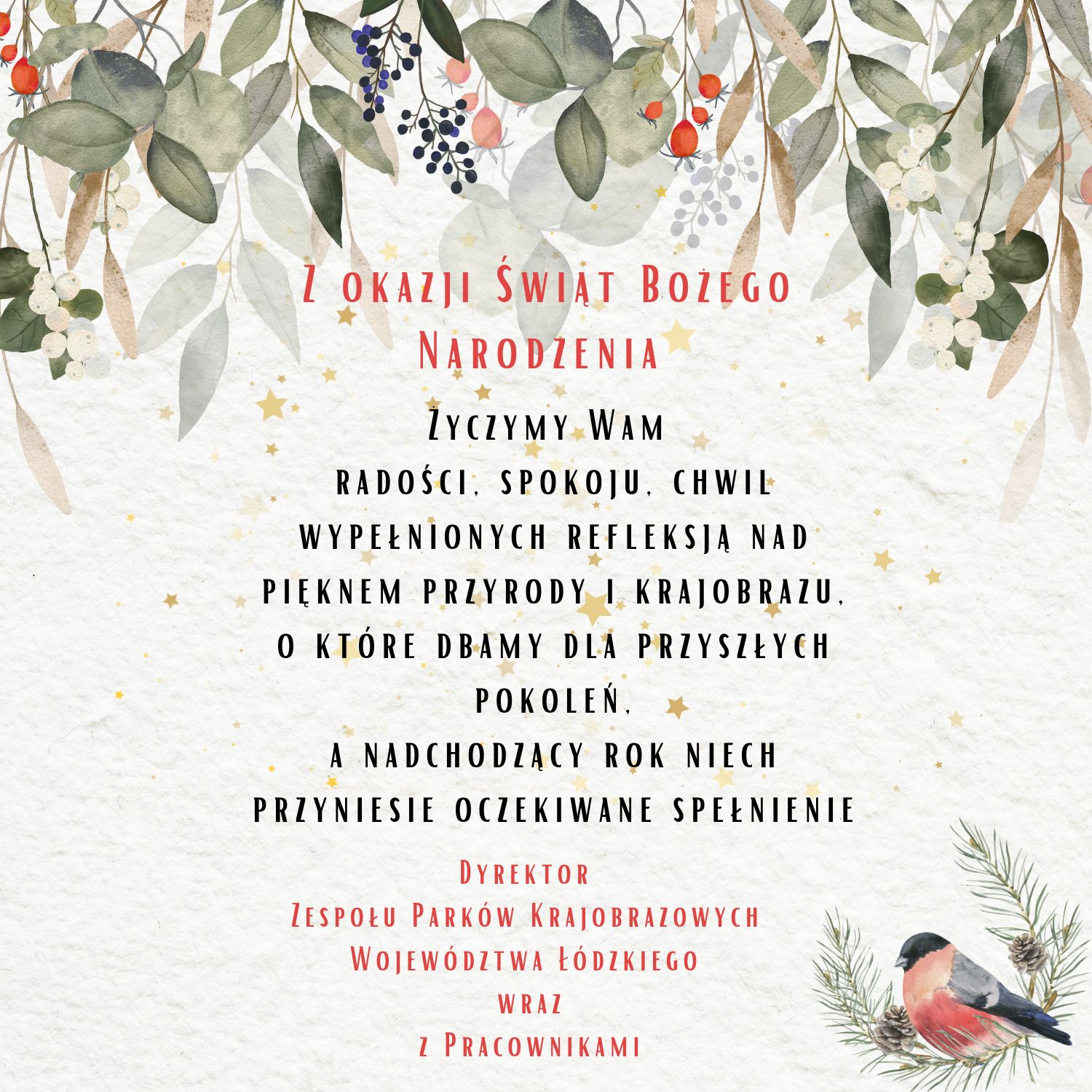 Zdrowia, radości i pogody ducha z okazji Świąt Bożego Narodzenia oraz wszelkiej pomyślności w Nowym Roku składa Dyrektor oraz Pracownicy Zespołu Parków Krajobrazowych Województwa Łódzkiego.