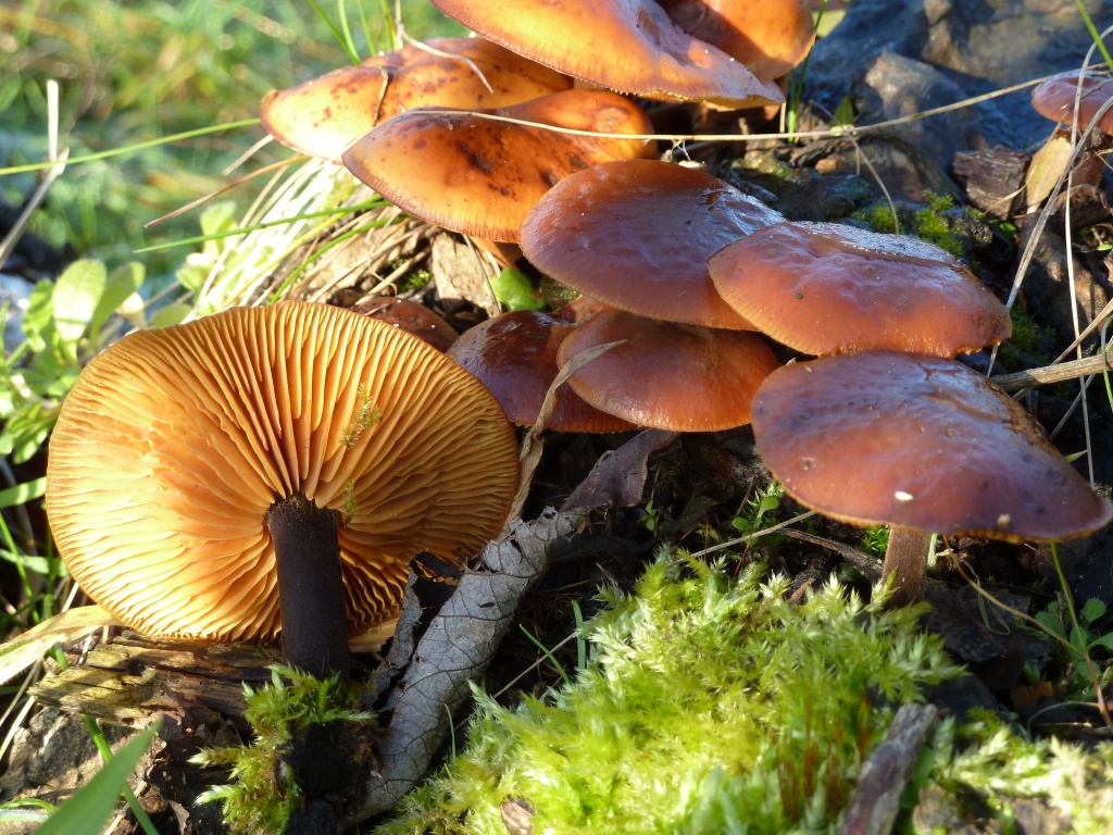 W okresie od listopada do marca możemy spotkać owocniki grzyba płomiennicy zimowej (Flammulina velutipes). Pojawiają się zwykle w grupach, często owocniki zachodzą na siebie dachówkowato, rosnąc w kłębkach na powalonych pniach i pniakach drzew, gałęziach a czasem tez na żywych drzewach, głównie wierzb, olsz, topoli, wiązów, rzadziej buka, bardzo rzadko świerku. Przeważnie można je spotkać w lasach liściastych i mieszanych, parkach, często w pobliżu zbiorników wodnych. Płomiennica zimowa swoja nazwę zawdzięcza kolorowi bo jest zazwyczaj pomarańczowoczerwona wiec kępki jej owocników zdaja się być płomykami ognia wystającymi z nagich kawałków drewna bądź zeschłych liści. Drugi człon nazwy mówi o tym kiedy płomiennice możemy spotkać. Inne nazwy zwyczajowe - opieńka aksamitnotrzonowa, kółkorodek aksamitnotrzonowy, monetka aksamitna, zimówka aksamitna, listopadówka, zimówka, zimówka czarnotrzonowa.