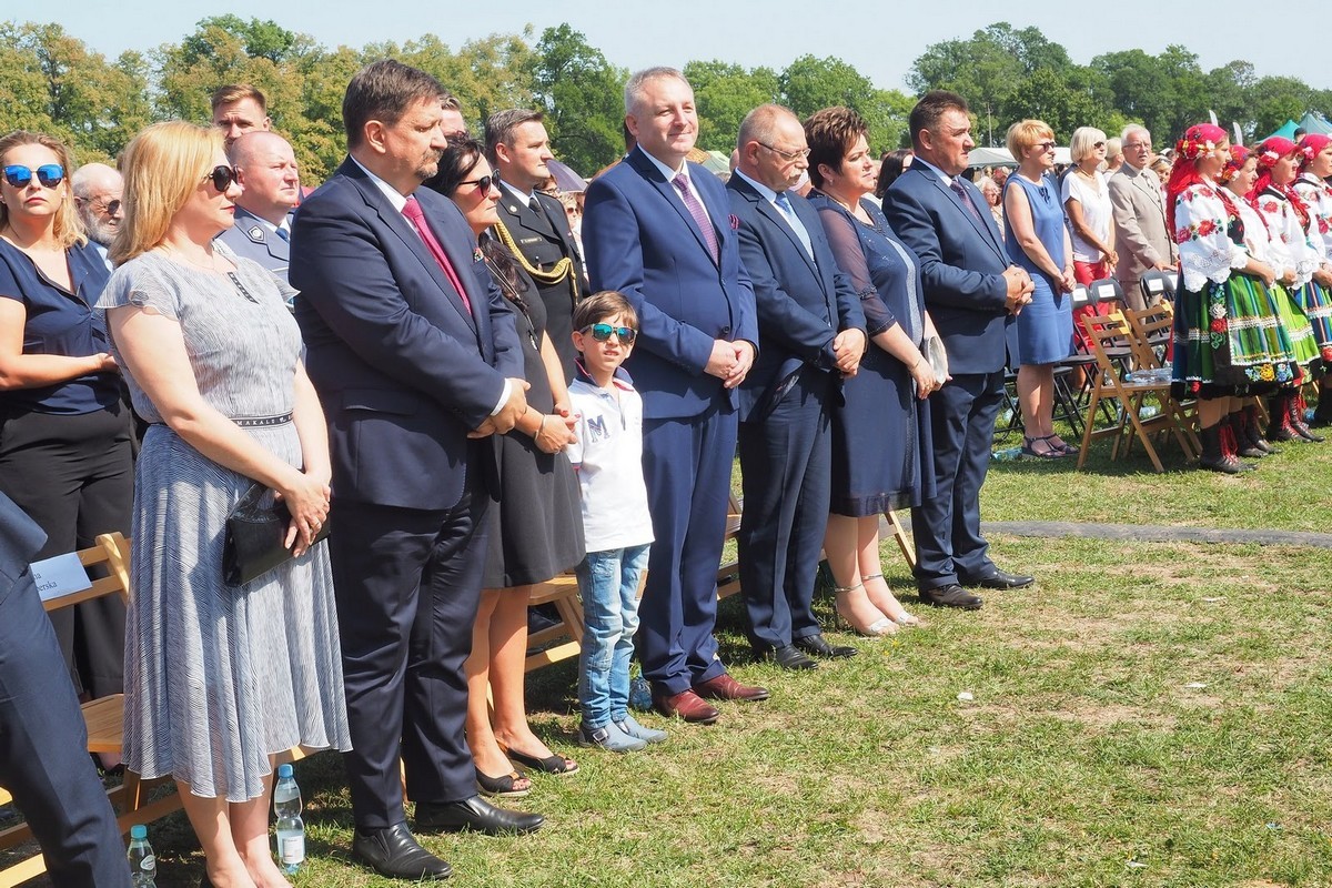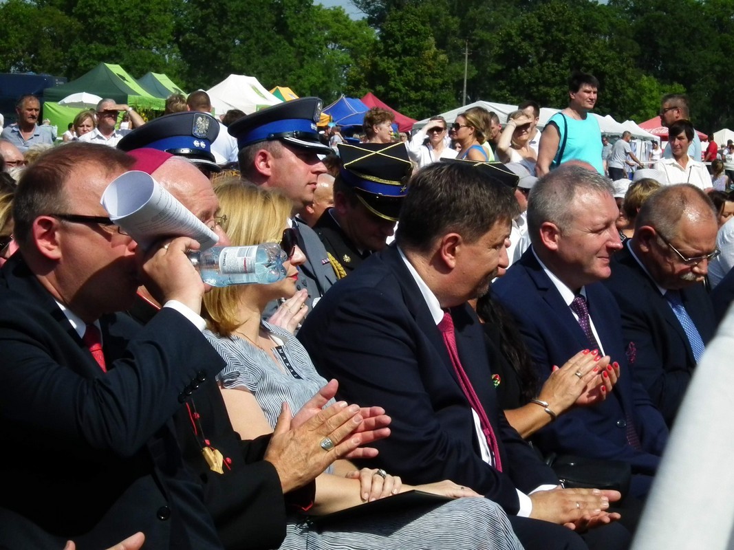 Zgodnie z tradycją w części obrzędowej, każda z gmin wchodząca w skład województwa zaprezentowała wieniec zrobiony z tegorocznych plonów. Stowarzyszenie „Zamiary Przyjazna Wieś” z powiatu łowickiego zwyciężyło w wojewódzkim konkursie na wieniec dożynkowy. Program niedzielnych uroczystości był silnie związany z obchodzonym w tym roku 100-leciem województwa łódzkiego. Z tej okazji uhonorowano odznakami zasłużonych sołtysów oraz posadzono Szpaler Dębów 100-lecia województwa łódzkiego.