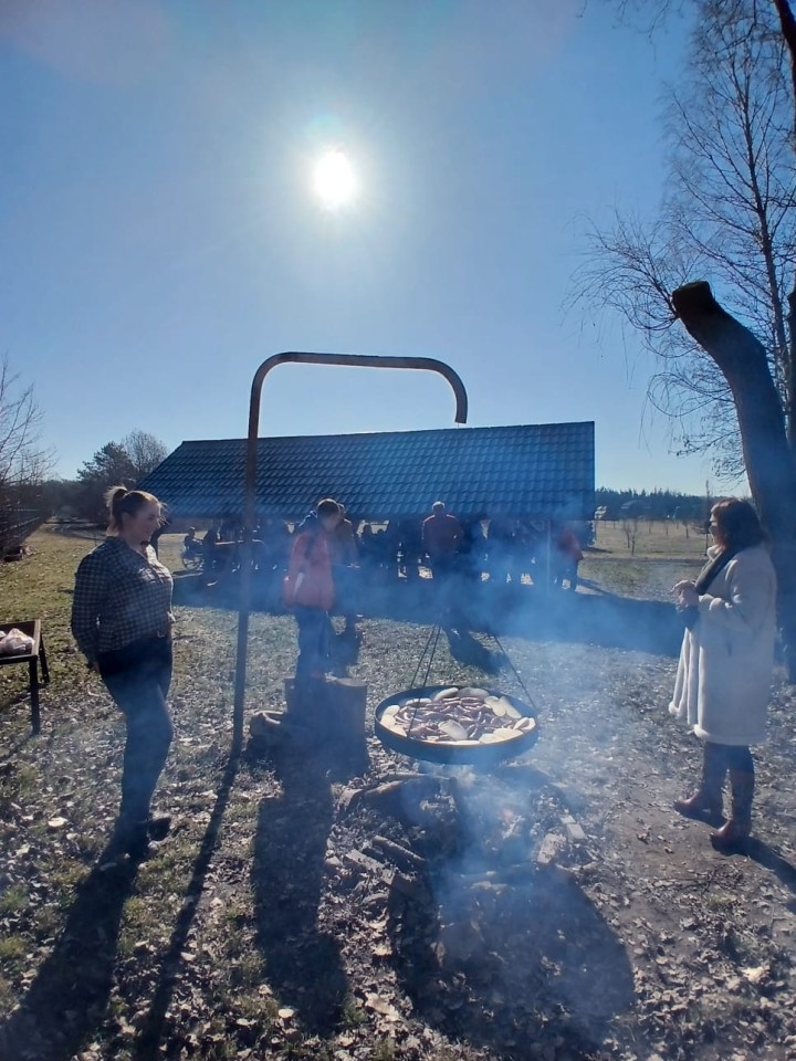 Po spacerze grupa uczestników łapała ciepłe promienie słońca i dotleniała się na świeżym powietrzu. Rozpaliliśmy pierwsze w tym roku ognisko.