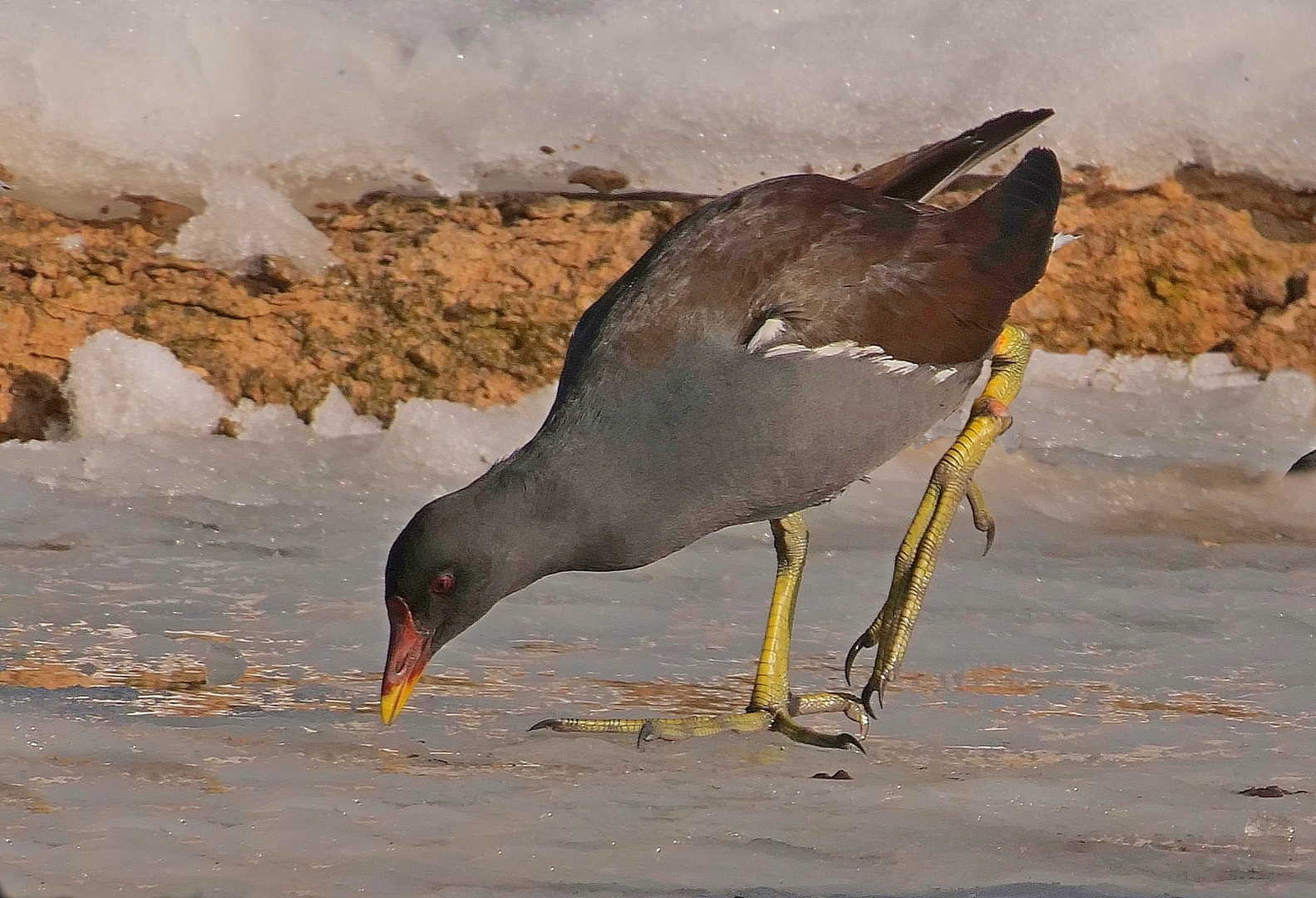 Podczas zimowego monitoringu ptaków na rzece Pilicy w Sulejowie, obserwowano dwie kokoszki, jedna z nich utykała na lewą nogę. Jej chód był trochę chaotyczny, mówiąc po ludzku ptak kuśtykał. Kokoszki, zapewne była to para, poszukiwały wspólnie pokarmu w przybrzeżnej roślinności szuwarowej.