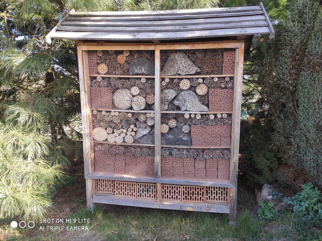 Wraz z nadejściem wiosny i pierwszych ciepłych dni, pracownicy Przedborskiego PK dokonali przeglądu hotelu dla owadów, który mieści się na zapleczu biura. Obiekt ten ma za zadanie stwarzać dogodne warunki do założenia gniazd przez pszczoły samotnice. Owady te pełnią ważną rolę w zapylaniu roślin, co z kolei wpływa korzystnie na zwiększanie różnorodności biologicznej. Uzupełnieniem obiektu mieszkalnego dla owadów jest rabata z roślinami miododajnymi. Kwitnienie roślin na tej uprawie jest rozłożone w czasie i pokrywa sie z aktywnością mieszkających w hotelu zapylaczy.